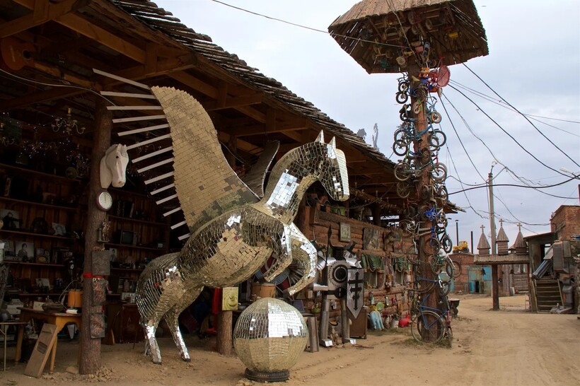 Однако больше всего гостей музея поражают не мифические существа или здания, а металлические скорпионы, которых можно встретить на территории всего музея. Заметить их сразу сложно, так как фигуры притаились на крышах объектов. Они тоже были сделаны из барабанов машин, однако работа над ними велась гораздо дольше — за несколько месяцев можно сделать лишь одного скорпиона. Все потому, что в фигуре много мелких деталей, над которыми нужно изрядно потрудиться.