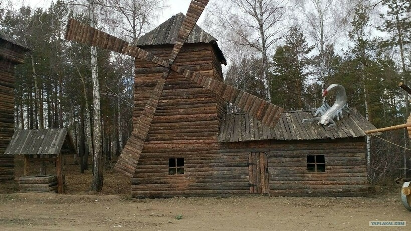Несколько лет назад на территории музея действительно располагалась свалка со всеми вытекающими, однако сегодня там построен сибирский острог. Не так давно работникам пришла идея создавать какие-то уникальные предметы из выброшенного мусора. Первыми решили поставить ворота. Сами рабочие их и построили, посмотрев обучающие ролики в интернете. Строительного мусора на территории полигона оказалось много, потому все необходимые материалы были найдены на месте.