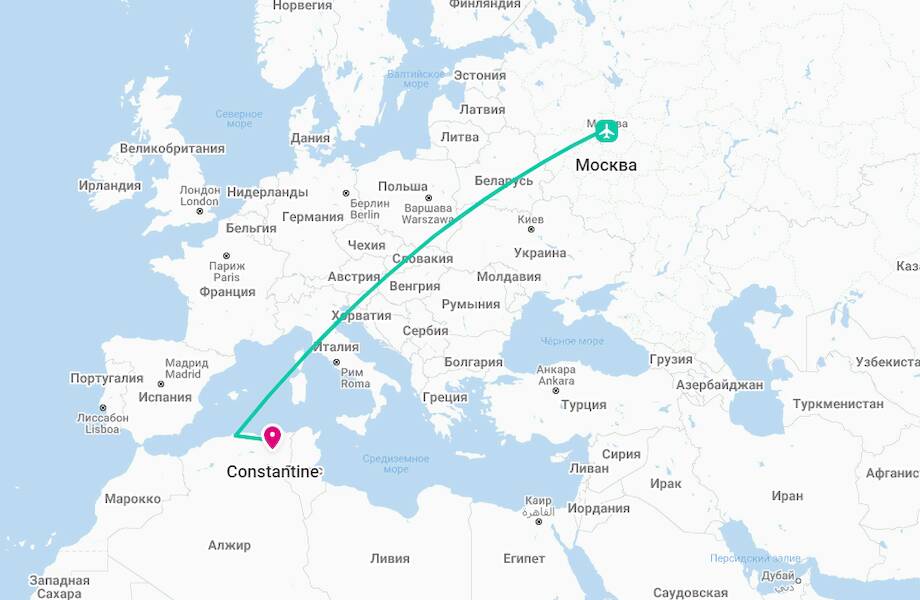 Маршрут полета из Москвы в Алжир сейчас