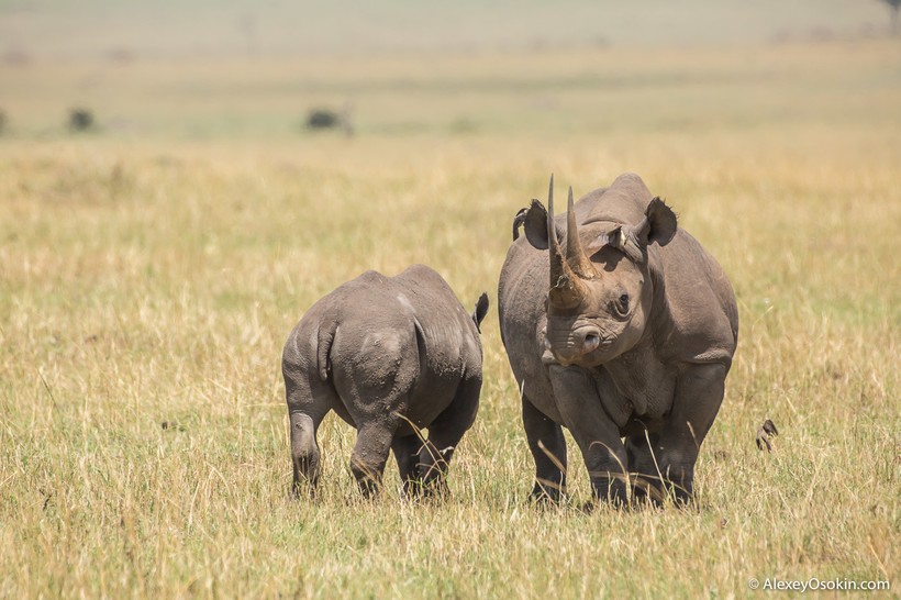 Носороги — очень их люблю! У взрослых особей нет естественных врагов. Они мощные, и у них ужасный характер. За месяцы, проведенные в Африке, это единственное животное, которое пыталось на меня напасть. Точнее даже не на меня, а на мой огромный Land Cruiser, который не кажется таким уж большим рядом с самкой носорога. Да и весит носорог больше... К сожалению, этих животных на Земле осталось крайне мало. Они считаются вымирающим видом. На 2000 квадратных километров заповедника Масаи-Мара их осталось 56 штук. Виной всему браконьеры, которые убивают этих великанов ради их рогов.