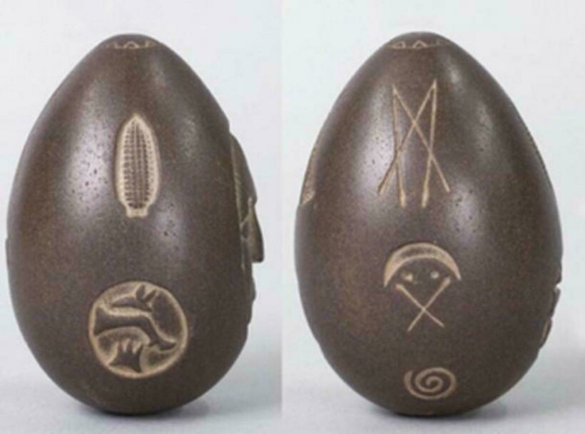Этот камень имеет форму яйца с идеально отшлифованными поверхностями, и на них — изображение лица. Точный возраст камня неизвестен, но техники, которые применялись для его изготовления, характерны для конца XIX века, когда его и обнаружили. Но яйцо явно похоже на древний артефакт. Необычайная гладкость камня стала загадкой для ученых, поскольку камень, из которого состоит это яйцо, очень капризный, поэтому его шлифовка заняла очень много времени. Но главная его загадка — идеально ровные круглые отверстия, которые как будто сделали сверлом, но в древности таких технологий еще не было. Может, эта вещица не такая уж древняя?