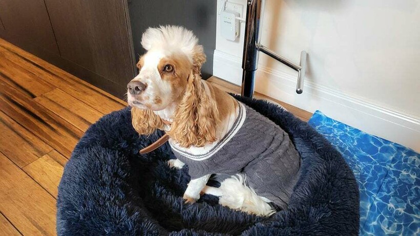 Покупка новенького свитера удачно совпала по стилю с новой стрижкой домашнего любимца.