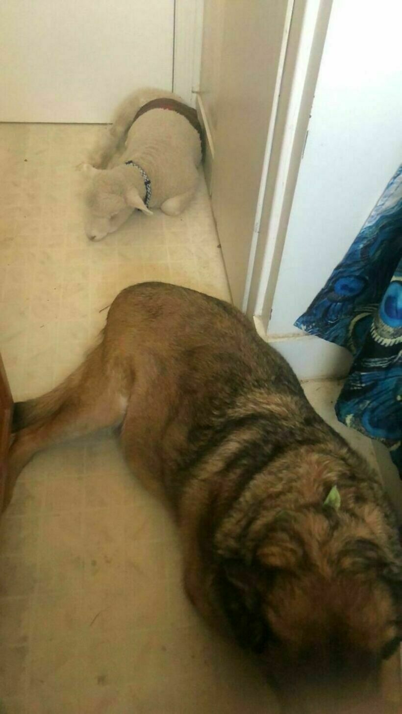 Ему разрешено заходить в дом, поэтому он везде следует за своим хозяином. На фото ягненок пришел за человеком в душ, привел с собой пса и закрыл дверь, чтобы тот не смог уйти.