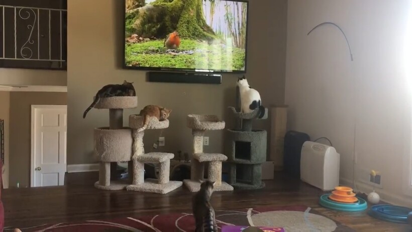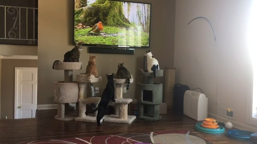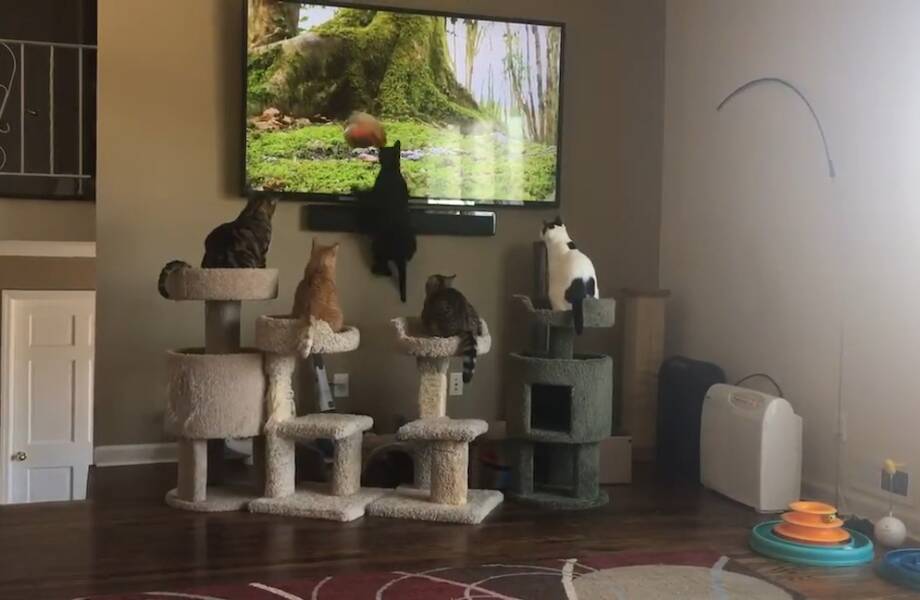 Кошки — удивительные охотники, будь то домашний кот, живущий в доме, или кот-охотник, живущий в лесу. Инстинкты побуждают их действовать, и в этот момент неважно, настоящий ли улов или нет. Вот, например, главными героями сегодняшнего ролика являются домашние кошки, объединившиеся в стаю, и телевизор.