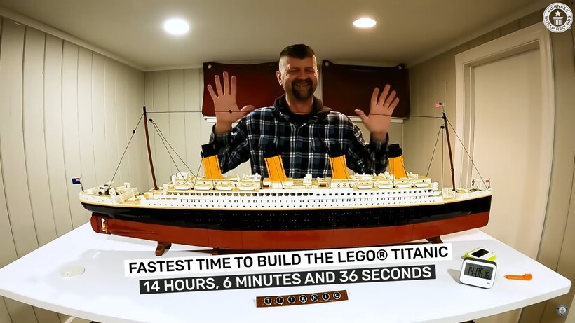 На его счету уже есть заслуженный рекорд 2021 года, когда он за 13 часов собрал модель римского Колизея. Затем он мечтал поставить новый рекорд с конструктором «Тысячелетний сокол», но ему попалась бракованная деталька и старания Пола не учли. Когда же в продаже появился «Титаник» и стал одним из самых больших конструкторов у бренда, то Уфема понял — вот его новый шанс побить свой же рекорд. Не задумываясь он приобрел набор и начал запись.