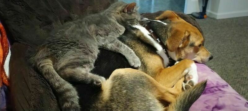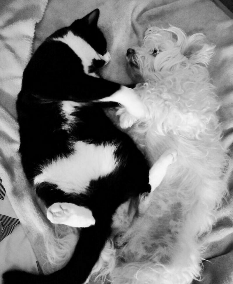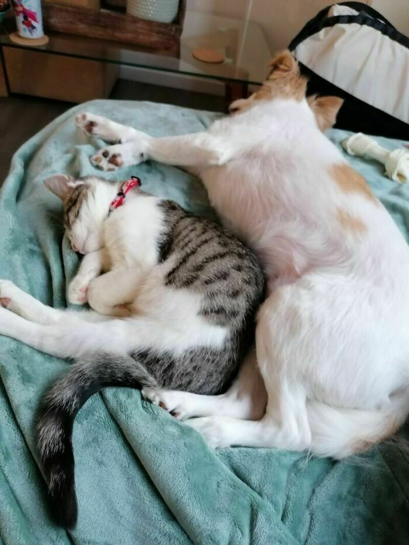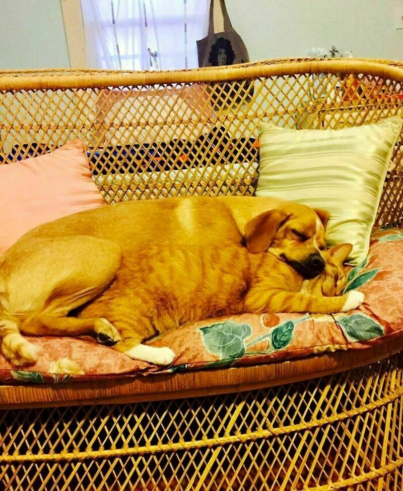 Даже сложно поверить, что кот и собака могут так сладко спать