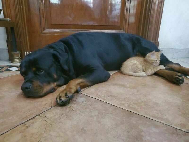 Кстати, не только кошки и собаки дружат, есть множество примеров дружбы совершенно разных животных, например, собака и тигрята, кошка и бельчата, даже собака и медведь. Вот тут мы рассказывали такие истории.