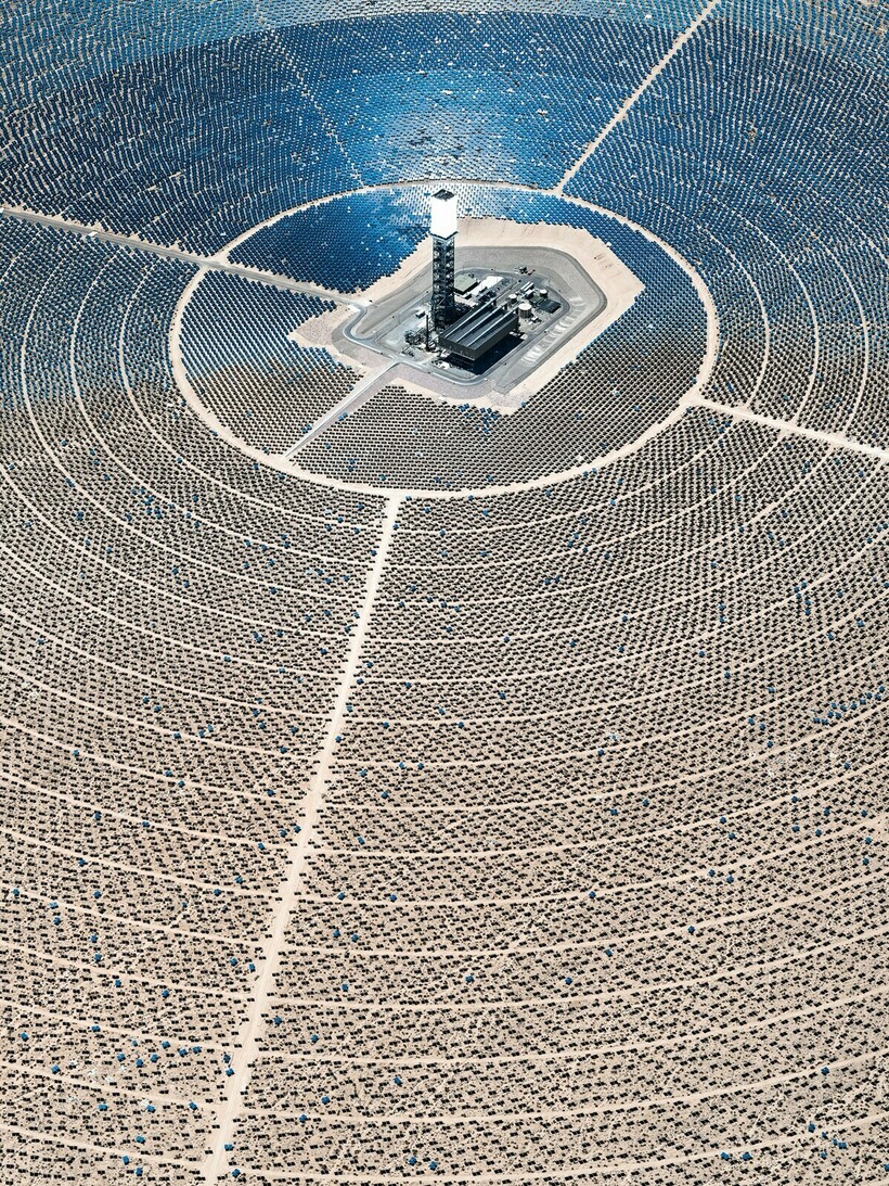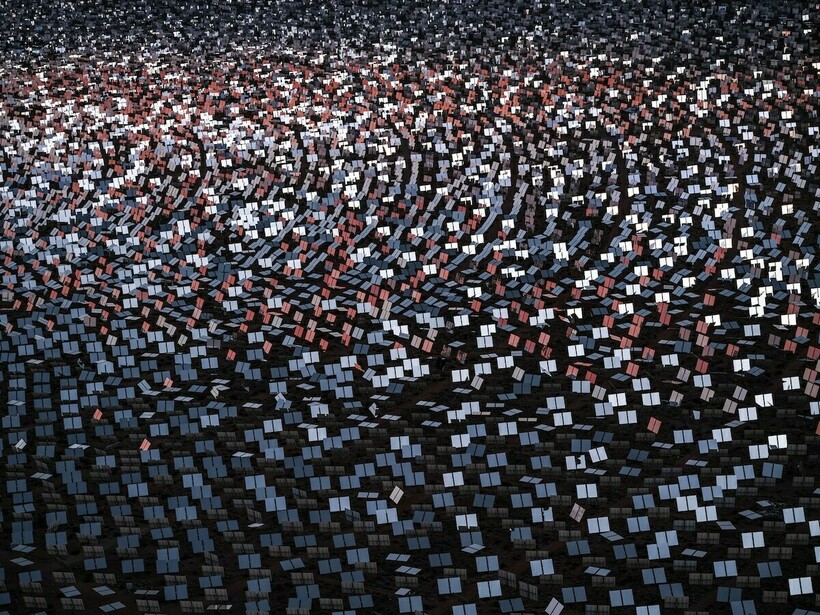 Мы как-то показывали, как работает одна из самых больших солнечных ферм в Индии. Однако таких электростанций очень много и в других странах, и именно на их поиски отправился фотограф Том Хеген (Tom Hegen). Он уже несколько лет снимает эти огромные фермы с высоты, пролетая над ними на вертолете. Сотни упорядоченных солнечных батарей, в которых отражается небо: именно так предстает перед нами проект Solar Power Хегена, одновременно завораживающий и успокаивающий. Возможно, в следующее столетие подобные электростанции станут нормой и будут располагаться рядом со многими городами планеты.