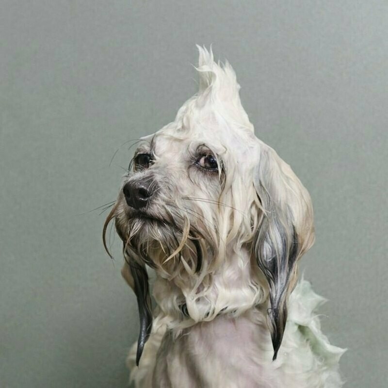 А это фото Софи Гаманд (Sophie Gamand), которая обожает снимать собак во время груминга
