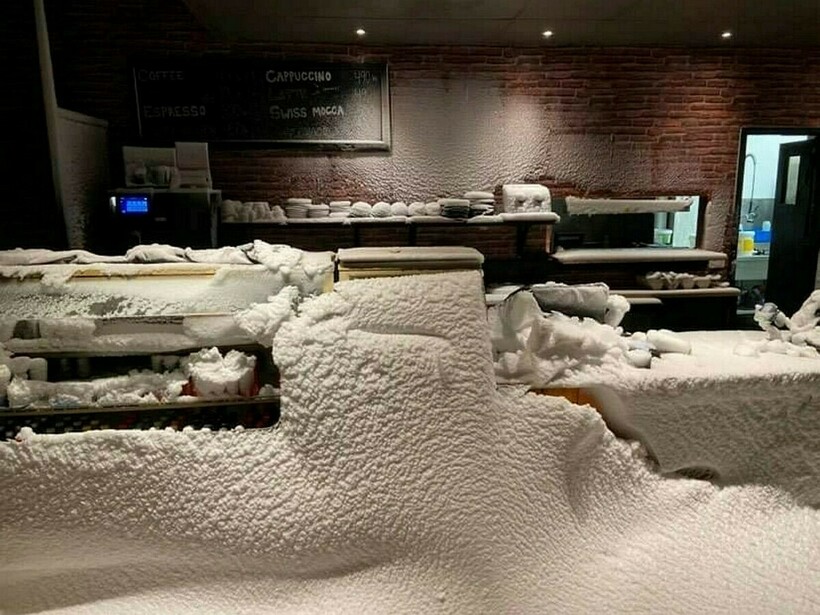 Видимо, такой большой запас продуктов необходим на случай очередной непредвиденной метели. Порция из 50 панкейков, купленная в магазине, после увиденных выше погодных капризов уже не кажется перебором. Все-таки в заметенном по крышу снегом домике вкусняшки здорово помогут скрасить дни.