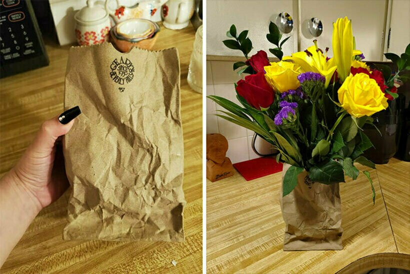 Оригинальная ваза для цветов, имитирующая бумажный пакет