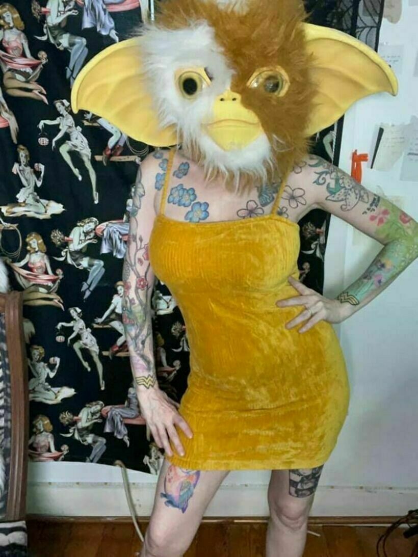 Найденная на распродаже голова гремлина и платье в тон к ней