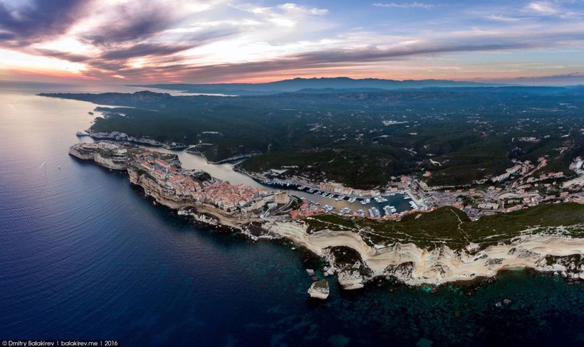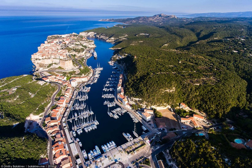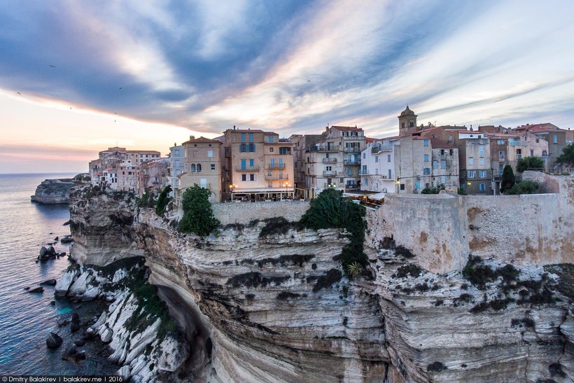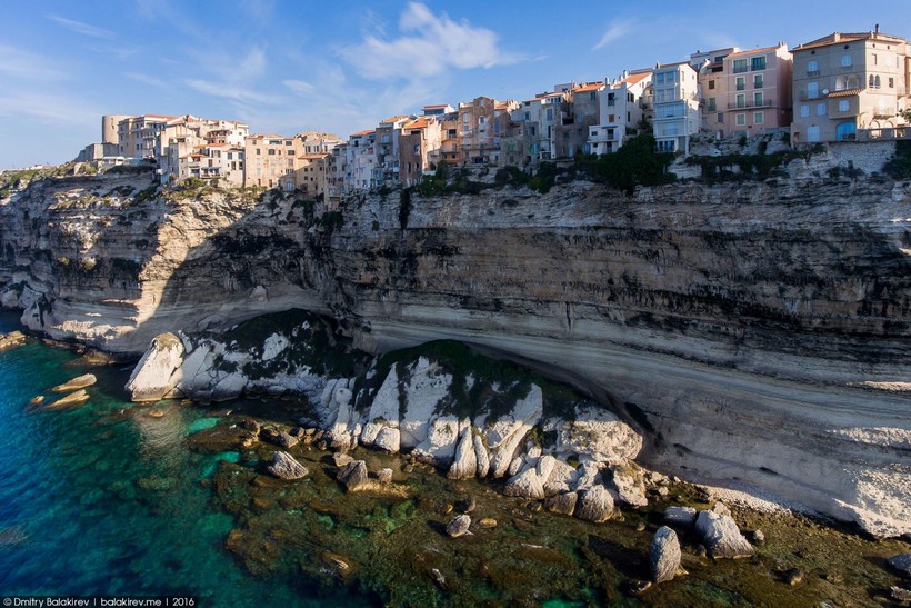 Живописный городок Бонифачо, южная часть острова Корсика. Причудливые извивающиеся выступы скал с десятками бухт и гротов. Красивые игрушечные домики с красными черепичными крышами, стоящие на самом краю. Кажется, вот тряхнет чуть-чуть, осядет порода и полетят они прямиком в море.