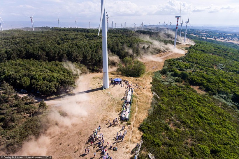 Гонщики уносятся со старта, оставляя за собой клубы пыли. Они поднимаются до самых ветряных мельниц.