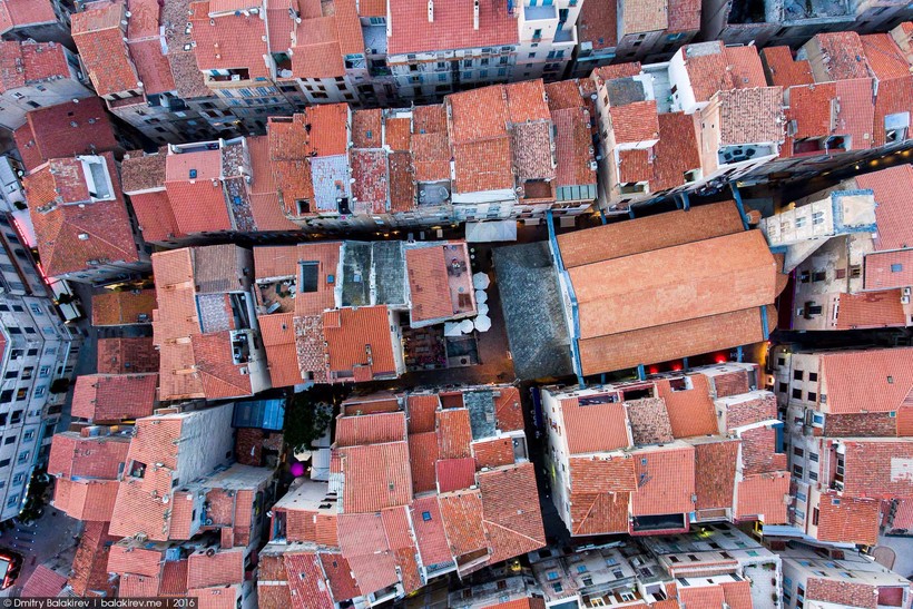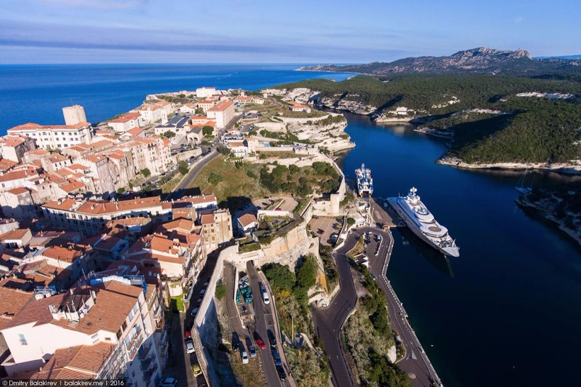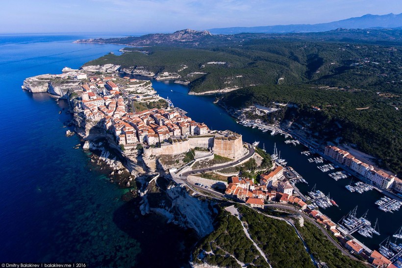 Бонифачо своими красными крышами домов и плотной застройкой улиц очень напоминает Черногорию, которую мне доводилось снимать с дрона.