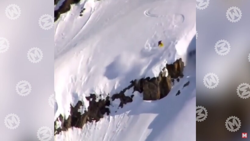 Спускаться на лыжах с таких гор рискуют либо профессионалы, либо отчаянные авантюристы. Мы не знаем, к какому типу относится этот лыжник, но его спуск поначалу был весьма виртуозным. Когда же он не справился с горой и начал падать, кувыркаясь в воздухе и поднимая снег, слабо верилось в счастливый исход. Но лыжник смог совладать с ситуацией и продолжить съезжать с горы.