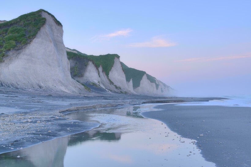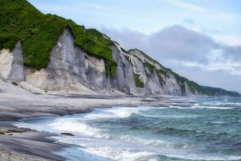 Итуруп — один из островов, который входит в состав Курильских островов. Там и находятся удивительной красоты скалы, которые простираются на 28 км. Они раскинулись прямиком на побережье Охотского моря, что создает еще более впечатляющую картину: с одной стороны — море, с другой — скалы, а посредине — серый пляж.