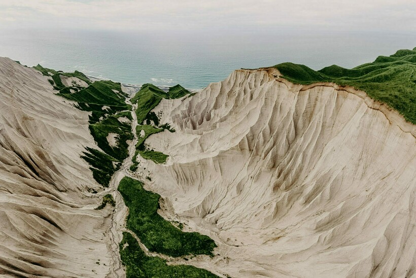 Интересно, что название этого объекта не совсем достоверно его описывает. Дело в том, что эти образования не скалы в прямом смысле. В их основе залегают не твердые породы, а пемза и вулканическое стекло. Эти вещества настолько рыхлые, что способны крошиться прямо в руках. В дождливое время можно наблюдать, как с вершин к пляжу стекают белые реки, создающие на возвышенностях целые каньоны и ущелья.