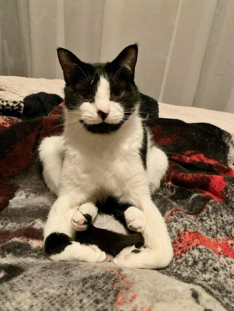 Глядя на этого кота, можно подумать, что у него в родственниках есть пингвины