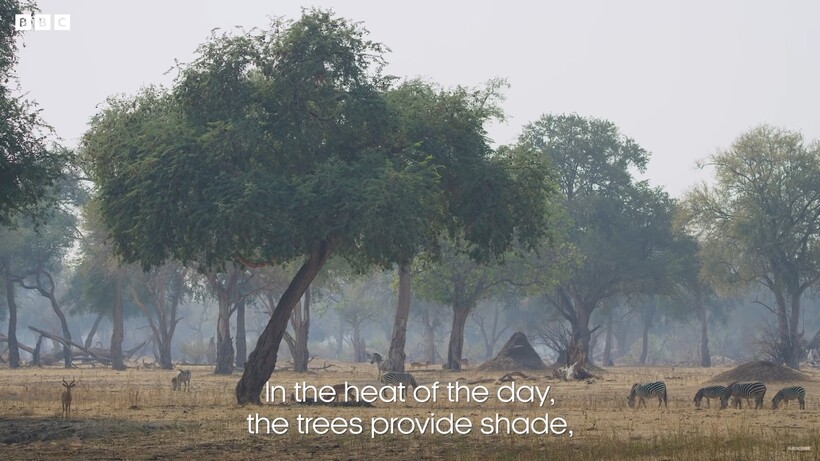 Одно из самых богатых жизнью мест в Африке — долина реки Замбези. Во время засухи некогда могучая и бурная река мельчает и тихо течет небольшим потоком мимо песчаных островков. От полного высыхания ее защищают огромные деревья, которые раскидистыми кронами закрывают реку от обжигающего солнца. Это кольцевые яблоневые акации, также известные как фаидхербии. В иных местах не остается ничего, кроме сухой потрескавшейся земли, желтой безжизненной травы и серых деревьев, вынужденных сбросить сочные листья, чтобы не тратить последнюю влагу.
