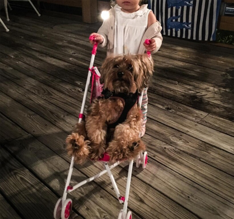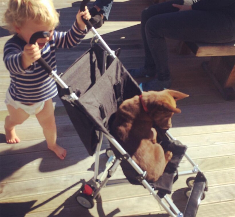 Малыши часто усаживают питомцев в свои коляски, чтобы поиграть в родителей. И часто собакам по вкусу чувствовать себя особенным.