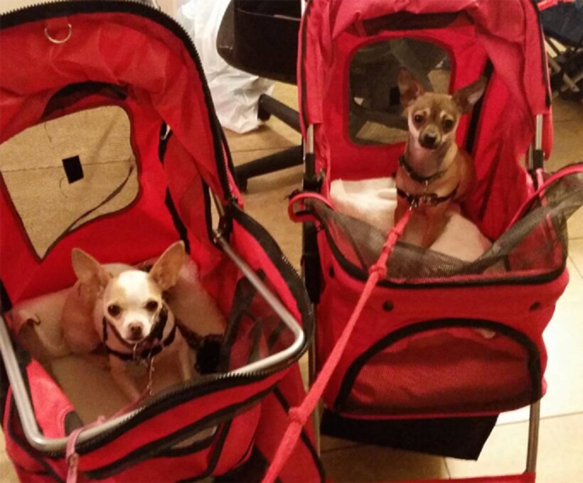 Хотя эти маленькие чихуахуа могли бы поместиться в одну коляску, эти единоличницы явно не любят делиться.