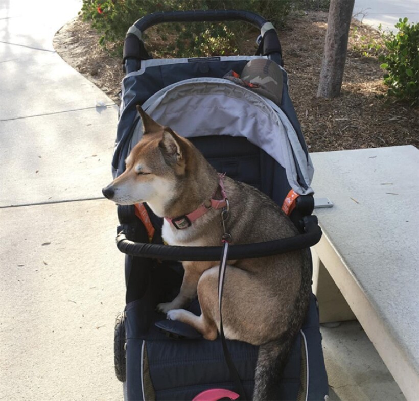 Все-таки есть собаки, которые рады занять место ребенка, пока тот гуляет, даже если они способны обойтись без своей коляски.