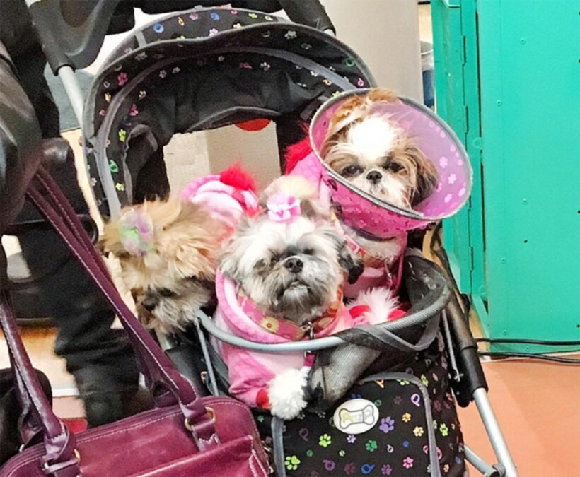Некоторые люди сразу покупают коляску для ребенка, чтобы туда поместилось побольше питомцев.