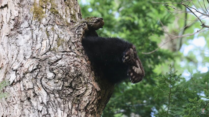 Он услышал странный звук издалека и начал идти к его источнику. Оказалось, что звук исходит от дерева. В этом дереве находилось дупло, а из дупла торчали две пушистые черные лапы. Мужчина сразу понял, что перед ним находится мишка. Сначала он не мог догадаться, что так заинтересовало косолапого, но потом все встало на свои места. Мишка забрался на дерево, чтобы поискать в дупле мед, но, к сожалению, меда там не оказалось. Расстроенный неудачей зверь спустился с дерева и постарался побыстрее вернуться на тропинку. А вы когда-нибудь видели медведей в дикой природе своими глазами?