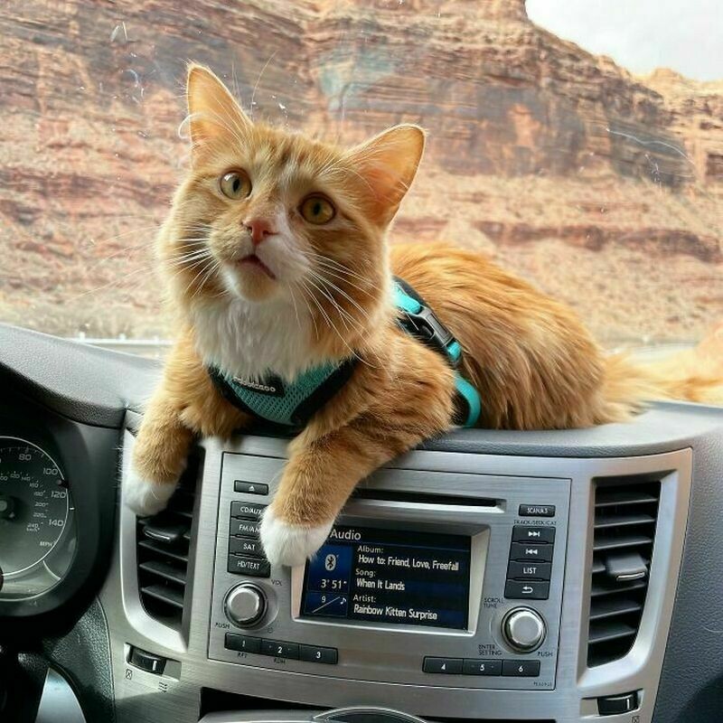 Кот безумно любит ездить на автомобиле, покоряя американские трассы