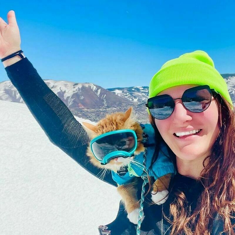Более того, Либхен катается даже на сноуборде, сидя в рюкзаке своих владельцев