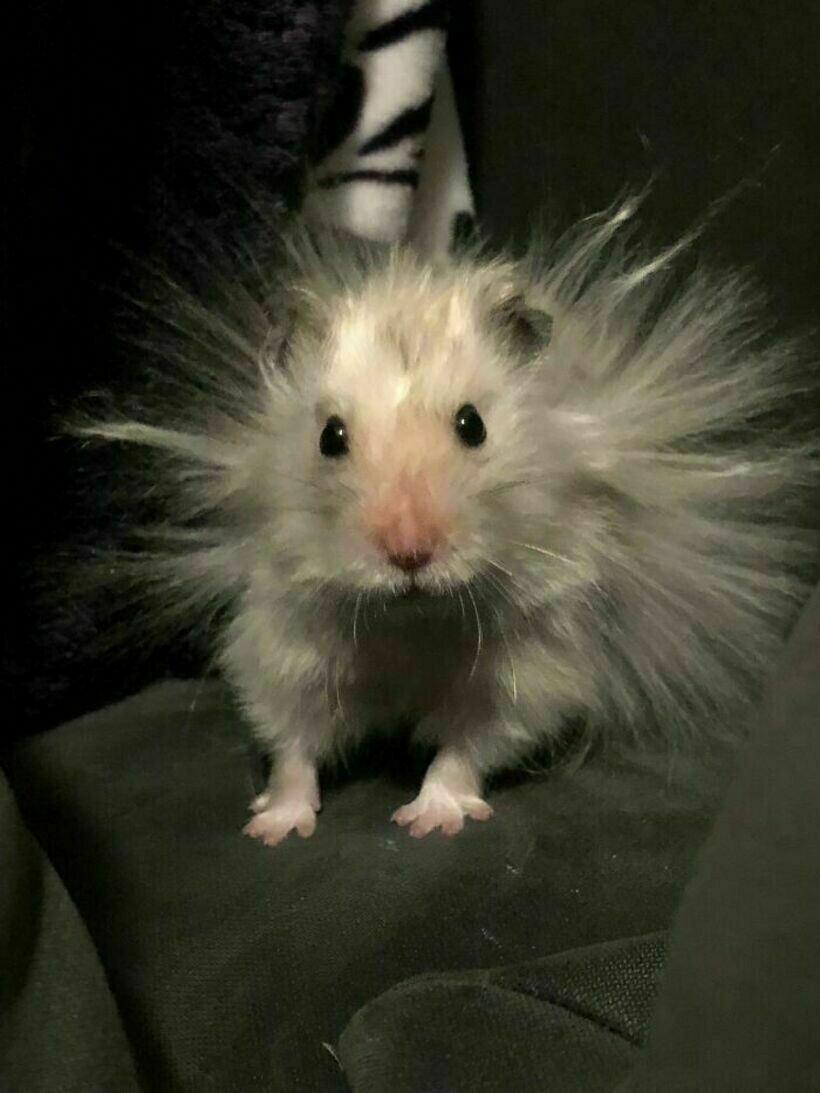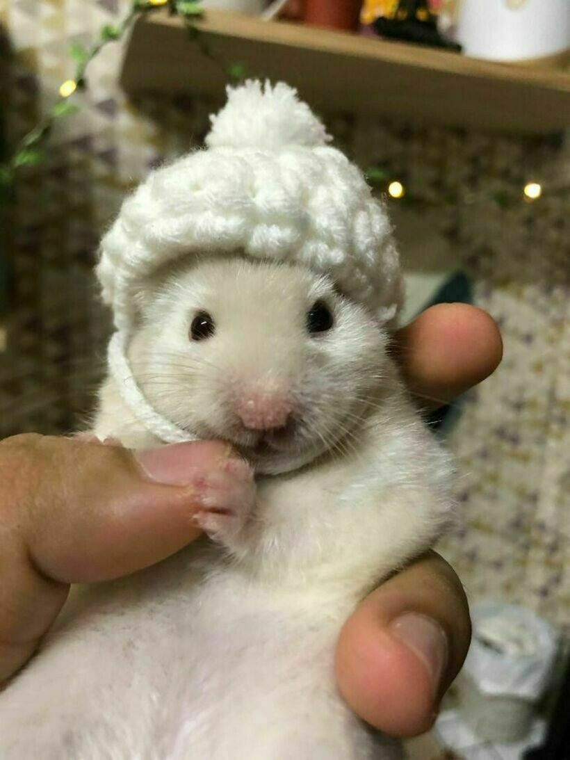Этого милого белого хомяка зовут Бисквит, и у него день рождения
