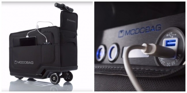 Этот новый потрясающий аксессуар сможет перевозить на дальние расстояния не только ваши вещи, но и вас самих! Ведь Modobag — это гибрид мопеда и чемодана, способный ехать со скоростью 12 км/ч и оснащенный USB-портом для зарядки телефона, а также GPS-датчиком, который не позволит потеряться вашему багажу.
