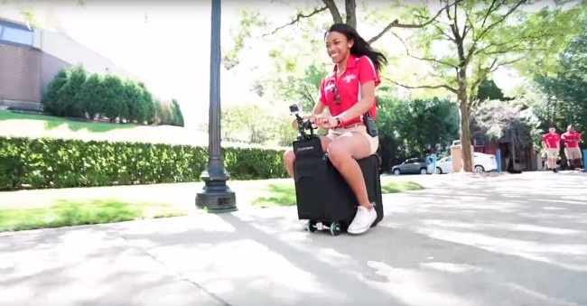 На таком модном устройстве можно даже приехать прямо в аэропорт, если он находится недалеко от вашего дома: электрический мотор чемодана рассчитан приблизительно на 10 километров непрерывной езды и на 10 полных зарядок телефона.