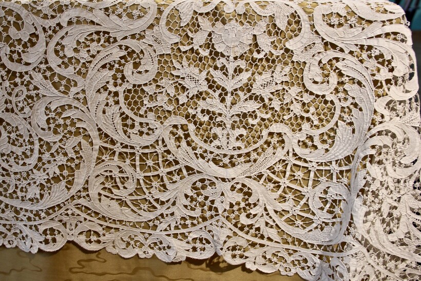 Раньше для вышивки использовали льняные нити, которые следовало хранить только в очень влажном месте, чтобы они стали мягкими и из них можно было плести. Но со временем кружево затвердевало, поэтому носить его было невозможно, так что теперь его стали плести только из хлопка. Такая вещь была большой редкостью, и ее передавали по наследству.