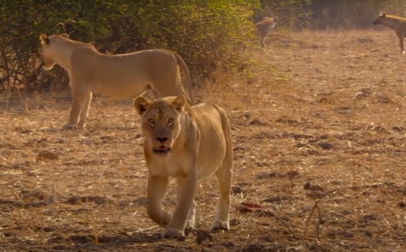 Когда же один бизон пойман, то все львы могут насладиться трапезой. Такая крупная добыча может хватить львам на несколько дней, и им не придется охотиться в ближайшее время. Сначала едят взрослые львы, затем львицы, после к добыче подходят годовалые «подростки», и лишь потом наступает черед львят в сопровождении матерей. На данный момент в прайде всего один львенок, прозванный авторами сюжета Мечтателем. В суровой Африке только он смог выжить из всего помета, но и сейчас ему нужно постараться. Его мать все еще кормит малыша молоком, но после ночной охоты львица ранена — ей не до еды и не до кормежки.