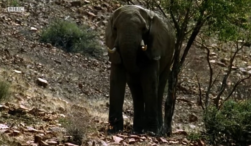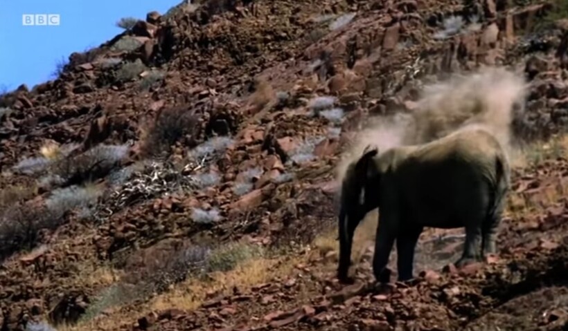 Постоянная жажда приковывает небольшую группу слонов к узкому руслу реки. 50-градусная жара слишком тяжела для детенышей, и они не отходят от водоема, где можно утолить жажду и охладиться, но взрослые слоны поднимаются выше в холмы, где растет зелень и можно подкрепиться. Чтобы защитить себя от жары, слоны используют разные уловки.