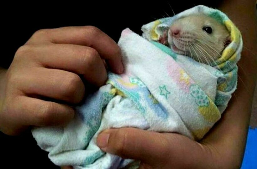 На ком же учиться пеленанию, как не на питомцах? Пока собаки вырываются, а коты царапаются, крысы наслаждаются нежностями.