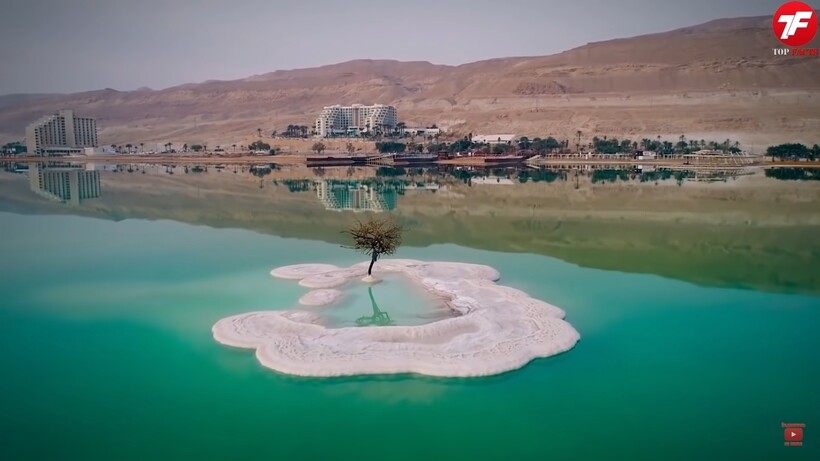 Дрон смог снять самое одинокое дерево в мире. Дело в том, что в Мертвом море есть совсем маленький соляной остров, на котором «растет» дерево. Туристам это кажется необычным, поскольку в такой соленой воде просто не может расти дерево, но разгадка этого дерева проста: его «посадил» один художник, чтобы привлечь внимание людей к проблеме обмеления Мертвого моря. Конечно, дерево не растет, а только чернеет от времени. Эта своеобразная инсталляция стала местной достопримечательностью. Подробнее о ней мы писали здесь.