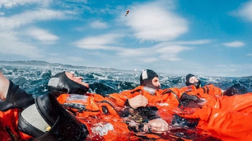 Правда, порой камере приходится снимать невеселые моменты, такие как этот. Как пишет автор фотографии, команда моряков оказалась в открытом море. Они разместились на надувном плоту, надев спасательных жилеты, и ждали помощи.
