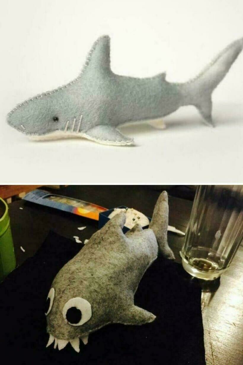 На первом снимке акула показана такой, какой она должна была быть, а на втором — то, что получилось у автора фото.