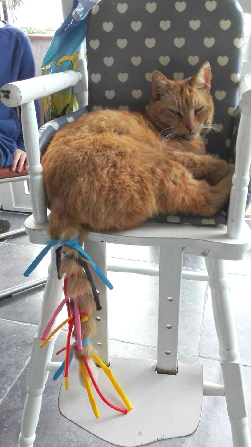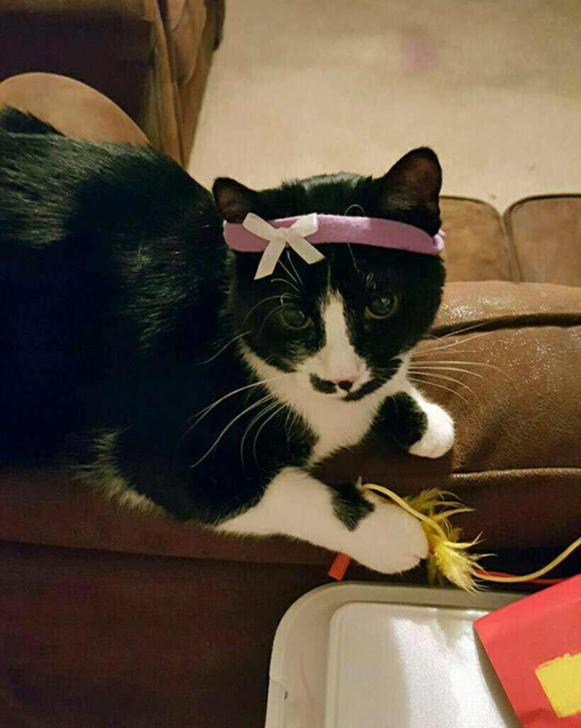 Юная хозяйка подумала, что кошке понравятся повязки на голову