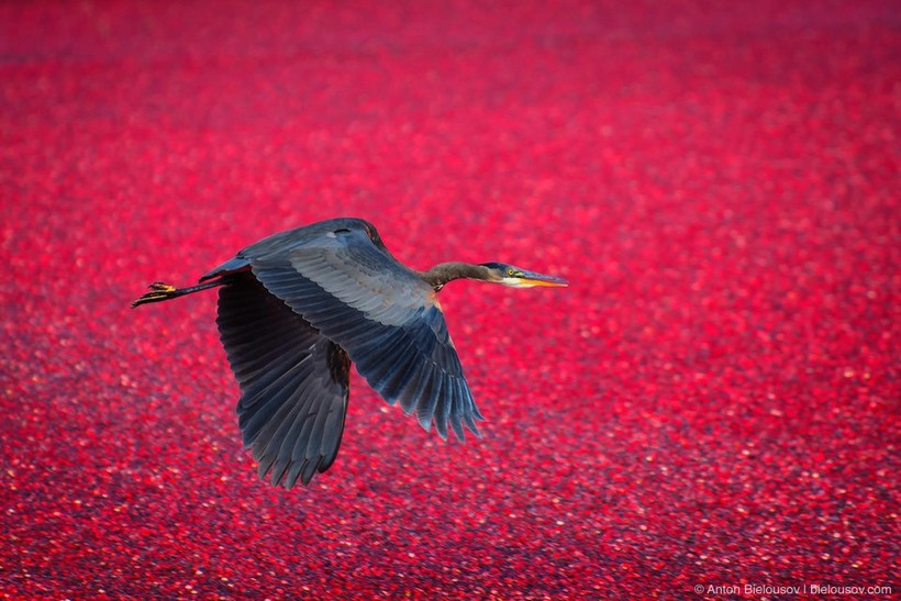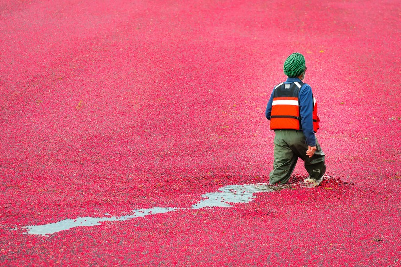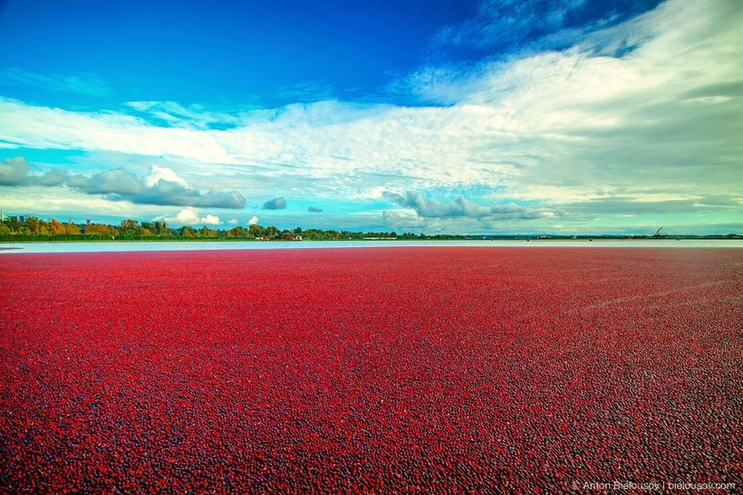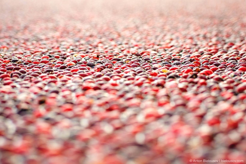 В середине октября клюквенные поля в долине реки Фрейзер затапливают на глубину около полуметра — чуть выше уровня кустов.