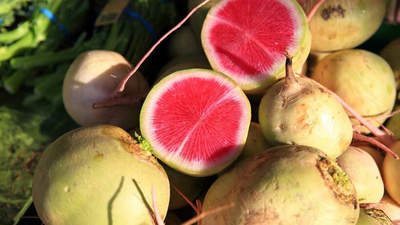 Арбузная редька не смогла завоевать европейский рынок, но успешно растет на американских фермах. Яркий овощ хоть и напоминает в разрезе арбуз, но имеет несвойственную ему горчинку.