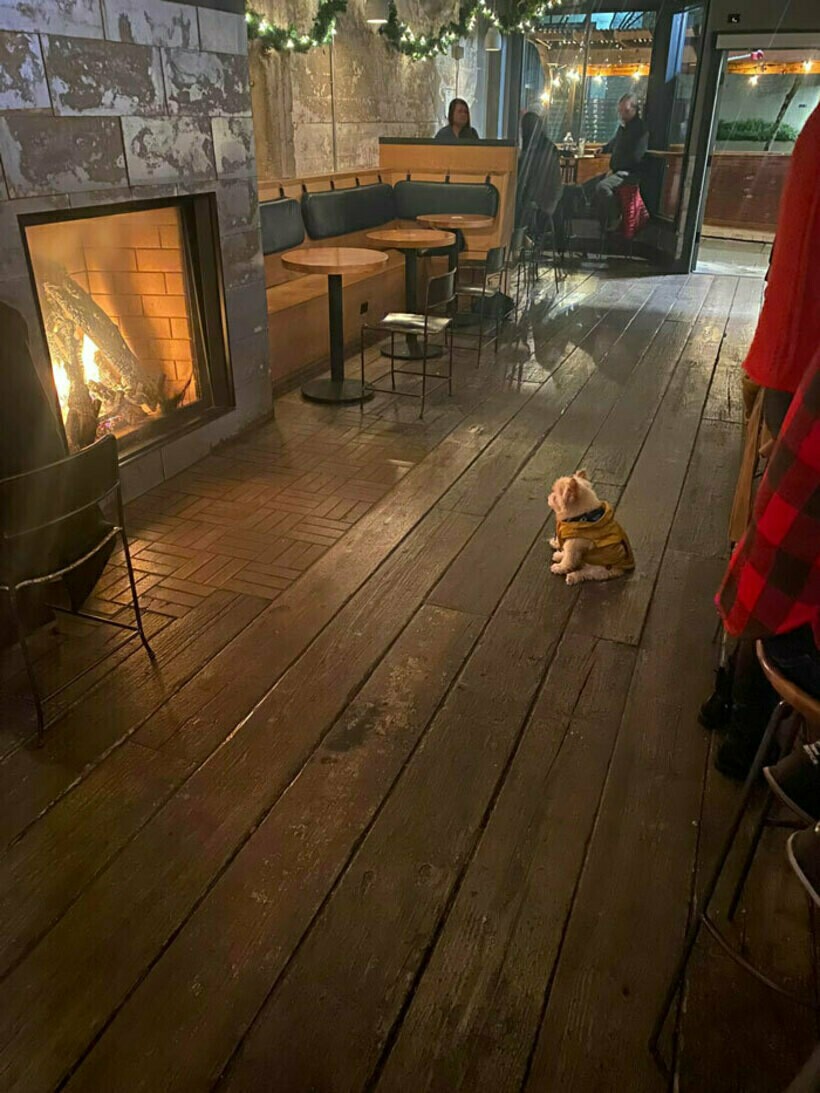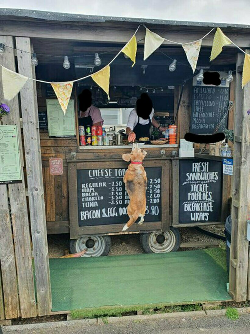 Псу надоело сидеть в очереди. «Хозяйка, ты не могла бы побыстрее делать заказ?!»