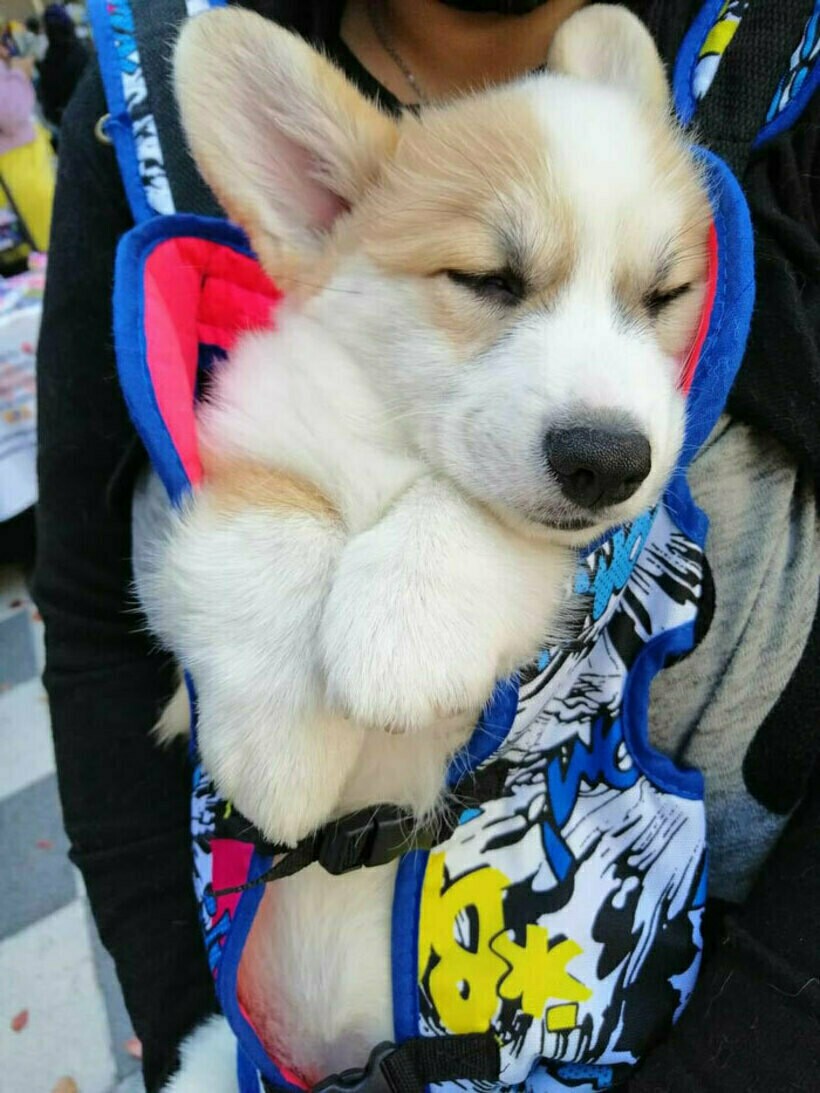 Устал, бедняжка, от дороги и уснул у хозяина на руках.