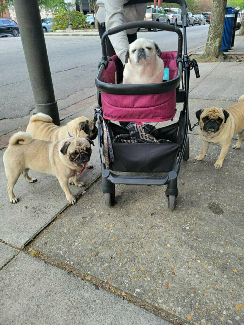 Поэтому заботливая хозяйка выгуливает её в коляске.