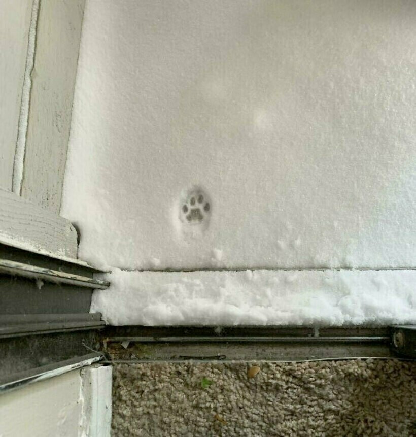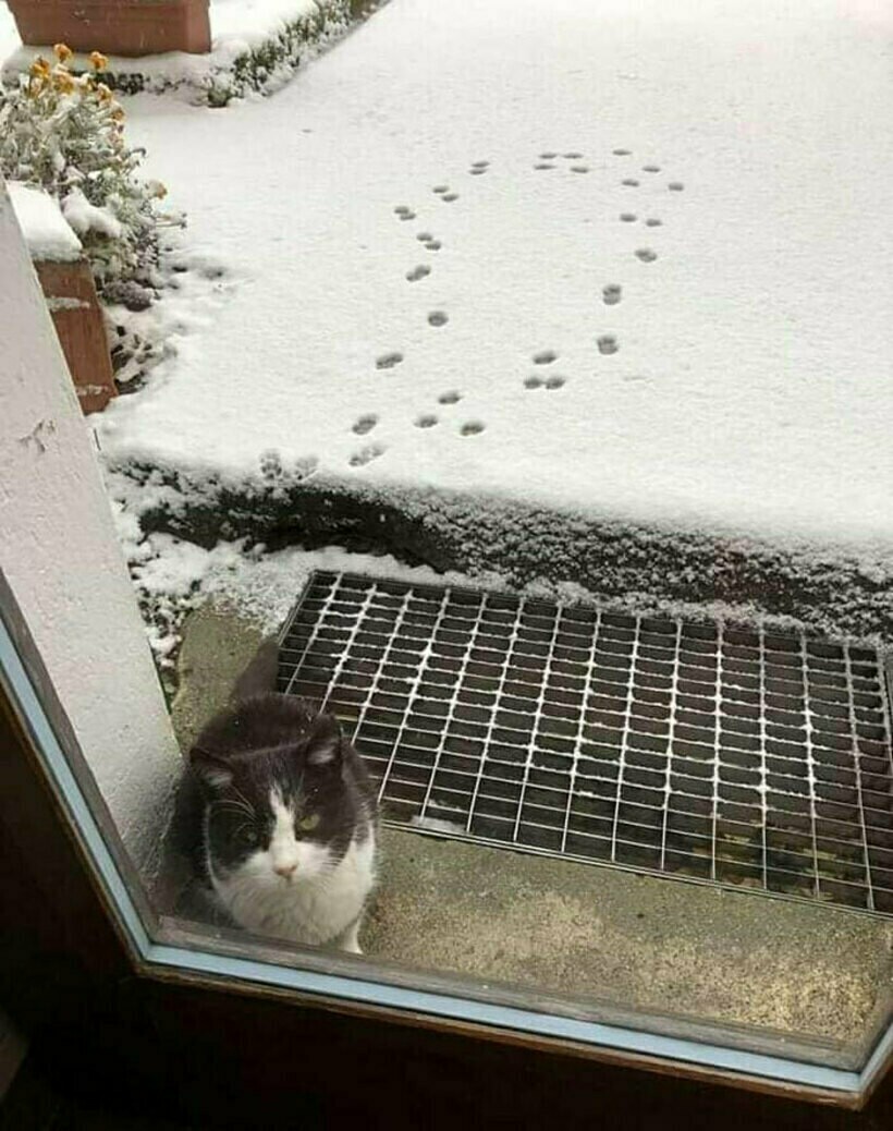 А этот хвостатый, что оставил свой след, с первого шага понял, что прогулку стоит отложить до лучшей погоды