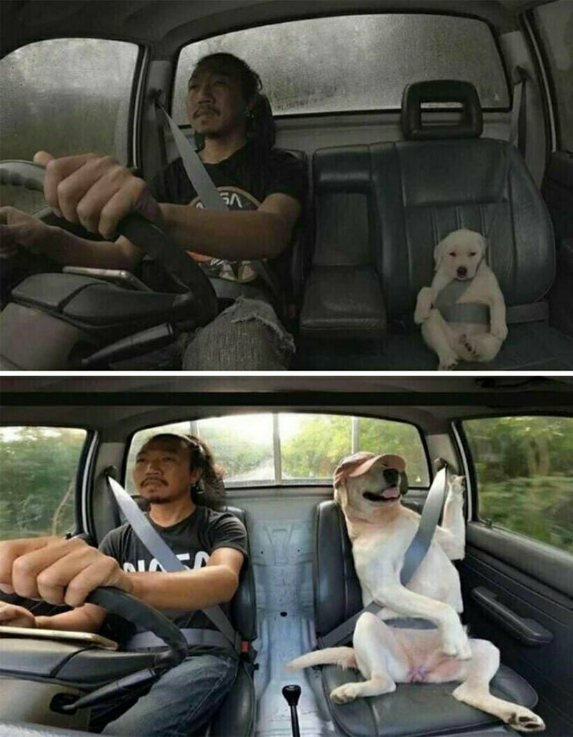 По этим двум снимкам можно заметить, как выросла собака