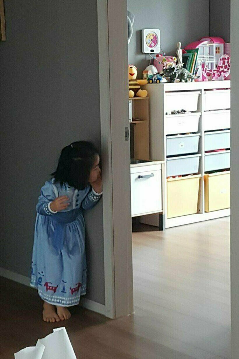 И затем подсматривает из-за угла, наблюдая, что будет происходить дальше без нее.